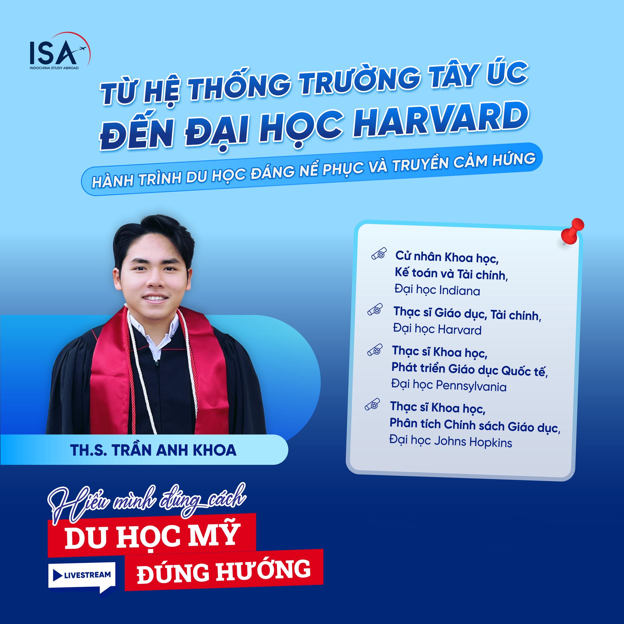 Joining the series as the guest speaker is Mr. Tran Anh Khoa, M.Ed., a former WASSer who boasts an impressive academic background, with degrees from Indiana University, Harvard University, Johns Hopkins University, and the University of Pennsylvania. Alongside his impressive credentials, Anh Khoa also brings real-life insights gained from years of studying and living in the U.S. Alongside his impressive credentials, Anh Khoa also brings real-life insights gained from years of studying and living in the U.S.