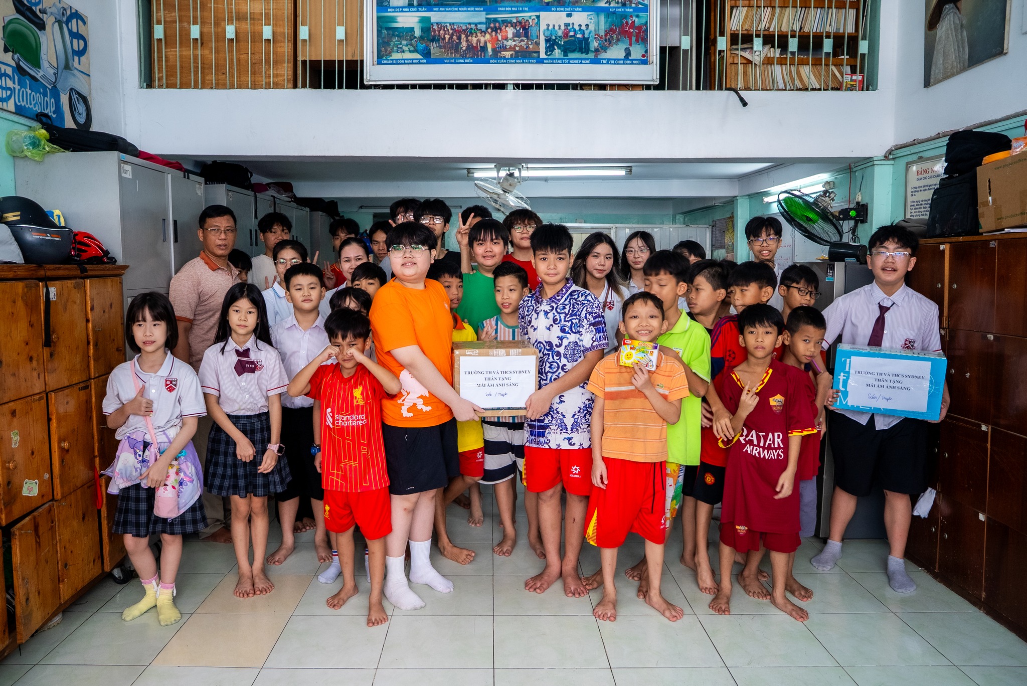 Bên cạnh đó, tinh thần sẻ chia được lan tỏa mạnh mẽ qua chương trình “Tặng sách – Gửi yêu thương”, khi cộng đồng SISS cùng nhau quyên góp hơn 700 đầu sách, gần 100 cuốn tập trắng, đồ dùng học tập và 35 thùng sữa gửi đến các bạn nhỏ tại Mái ấm Ánh Sáng và Chùa Kỳ Quang 2. Chuyến thăm đã tạo nên những khoảnh khắc xúc động, giúp học sinh hiểu sâu sắc hơn về lòng nhân ái và giá trị của việc sẻ chia.
